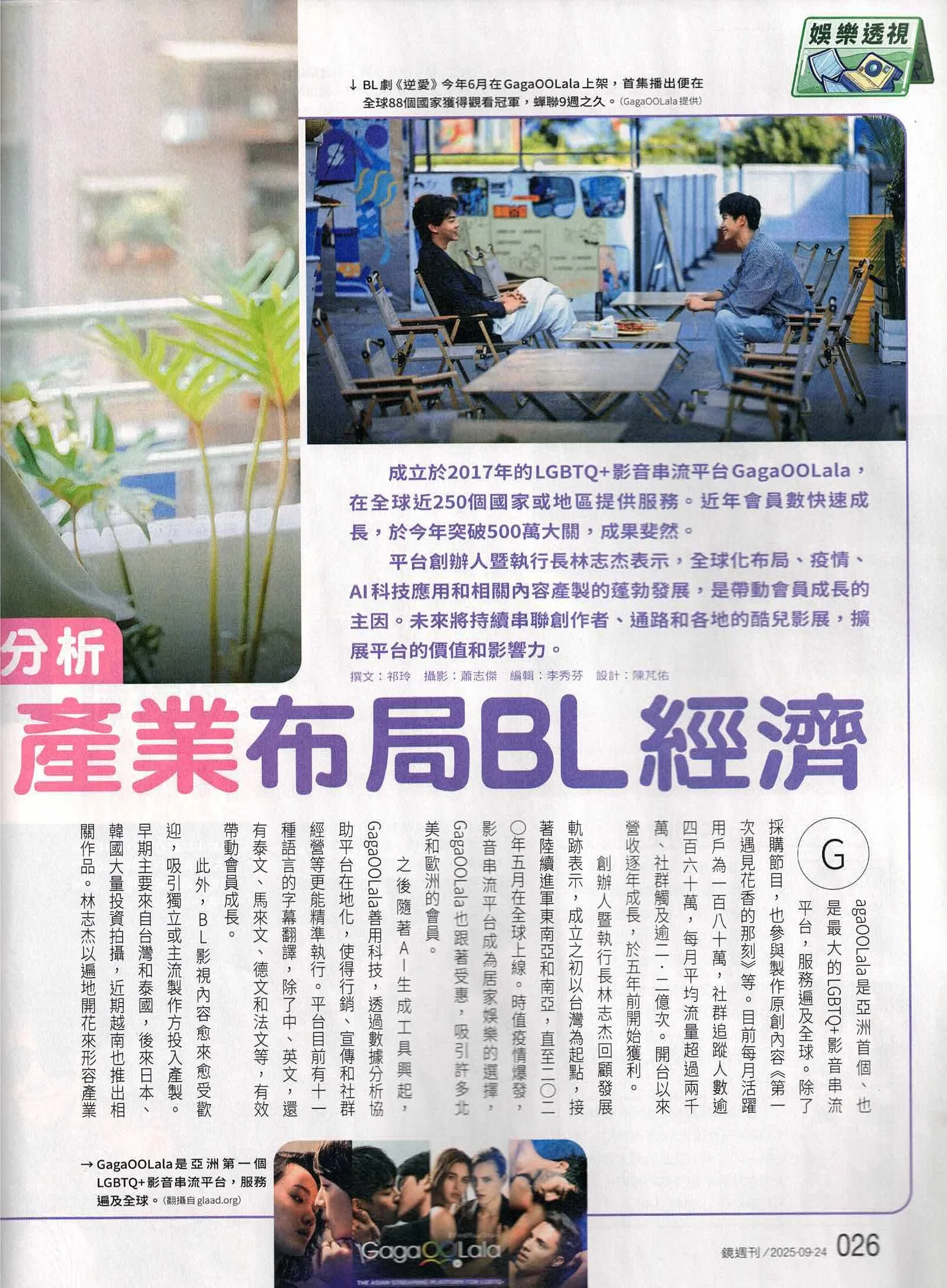 串聯影視產業布局BL經濟 GagaOOLala原創日劇泰劇韓劇泰劇BLGL彈一場完美戀愛第一次遇見花香的那刻GOL SUMMIT Sep 24 Written By Akash Rajbhandari 來源:鏡週刊紙本 GagaOOLala Akash Rajbhandari