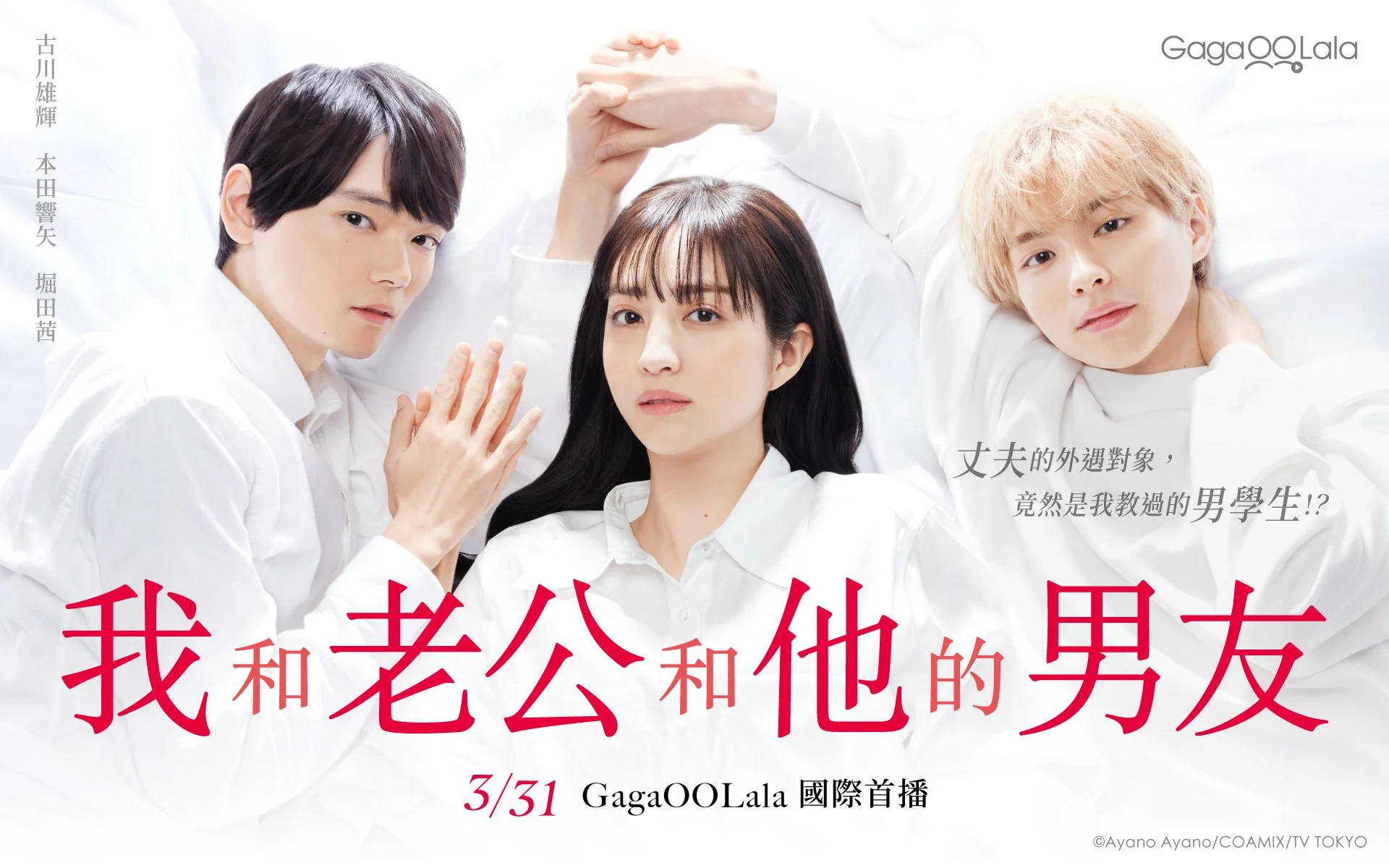 改編自同名漫畫、由堀田茜、古川雄輝與本田響矢所擔綱主演的日劇《我和老公和他的男友》,昨(3/28)晚在日本首播,海外則由全球最大、亞洲唯一的同志影音串流平台GagaOOLala重金買下獨播權,搶先日本TV TOKYO在海外地區首播。原著作者綾野綾乃大讚神選角:「聽說將被改編成電視劇時,我真的很驚訝,沒想到會發生這樣的事情!演員們也都很適合角色形象,演員和工作人員的合作之下會塑造出怎樣的美咲、悠生和周平呢?作為觀眾,我真的很期待!」