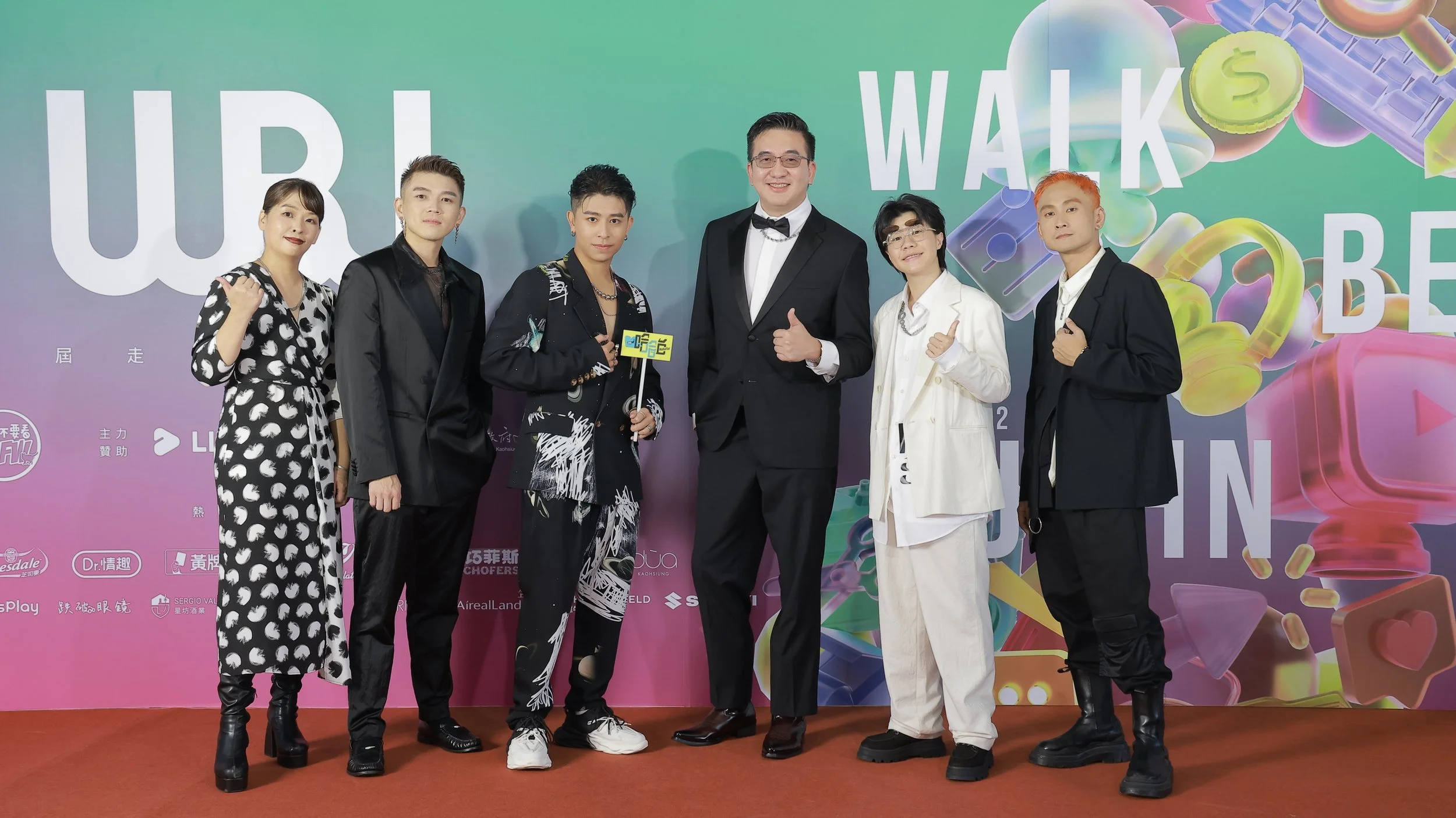 哈哈台紅毯爭艷,不免俗笑稱入圍就是肯定!(左起:Karen、Lawrance、蓋瑞、Jay、Fox、傑尼,照片:杰德影音提供)