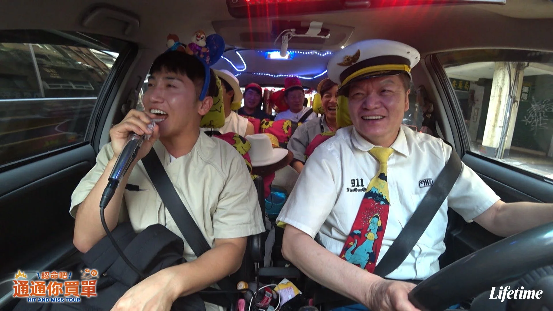 (左)俞世潤、(右)K歌運匠涂清涼_製作單位還特地請到了許多大明星都曾朝聖的「K歌運匠」涂清涼特色KTV計程車,在車內展開歌唱大賽,為節目帶來爆棚高潮!(照片:杰德影音提供)