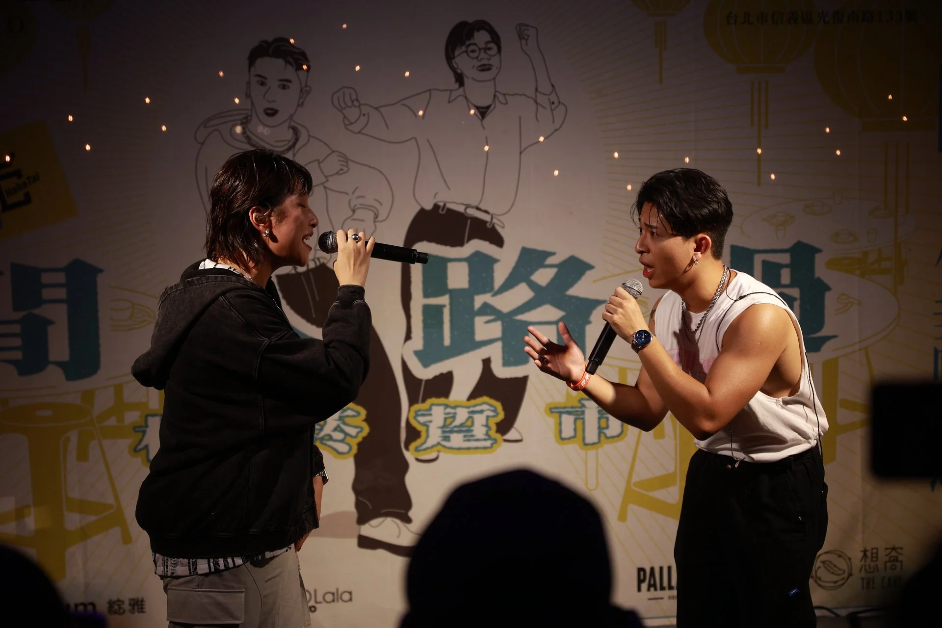 哈哈台開台十年首次實體活動《閒人路過:松菸踅市》市集,成員上台展開Live Podcast活動與現場觀眾分享趣事。(照片:杰德影音提供)