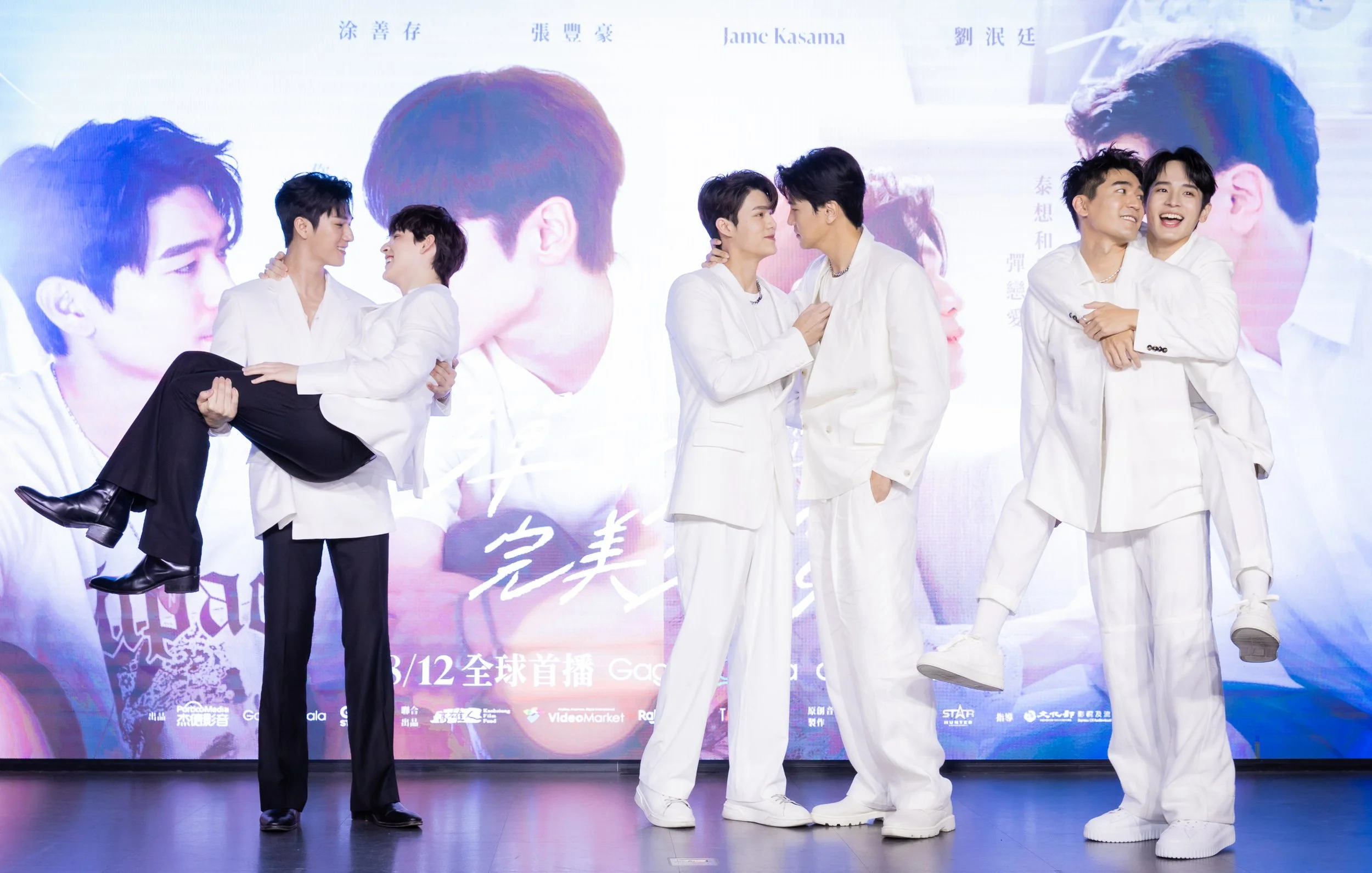 涂善存藉戲一圓音樂夢,自彈自唱驚喜表演新歌!《彈一場完美戀愛》涂善存、張豐豪、劉泯廷、Jame四帥CP為親密戲接受現場特訓,泰國BL巨星《龍月》CP MosBank驚喜現身上台親授「撒糖指導」,各式定格抱姿瞬成「BL奧運舉重比賽」現場!