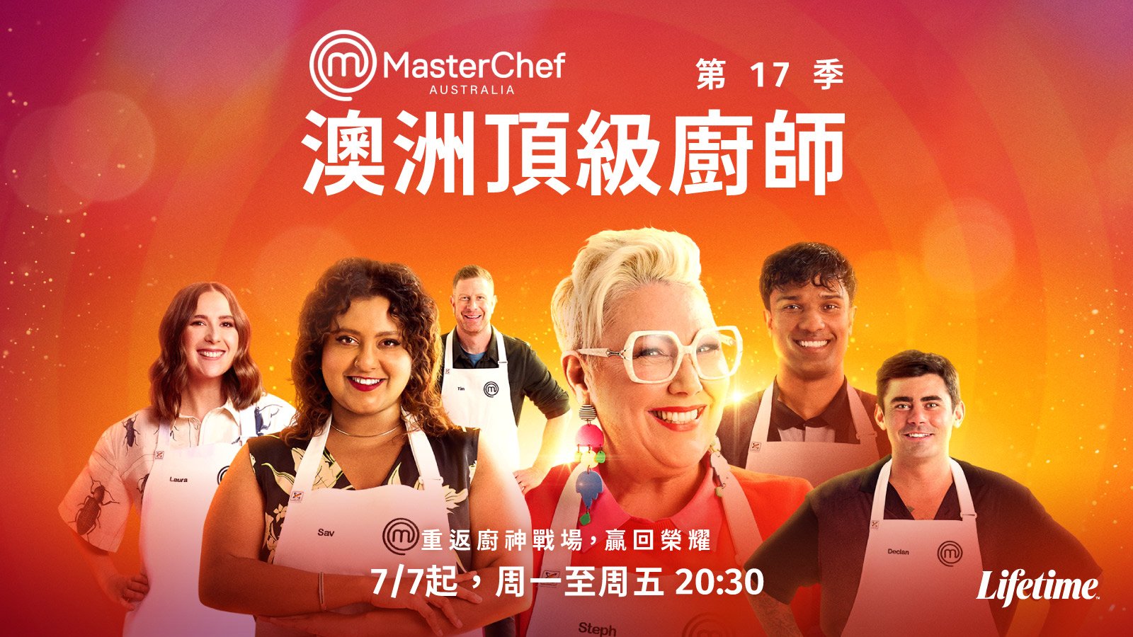 《澳洲頂級廚師》全新第17季將於7月7日起,週一至週五晚間8點30分在Lifetime娛樂頻道(中華電信MOD 264台、四季線上81台、Hami Video電視運動館、凱擘大寬頻407台、Home+中嘉201台、DCTV全國數位有線電視202台、北都數位有線電視20台,更多觀看平台請上杰德影音官網查詢)首播,並在每周日下午3點35分至晚間10點,馬拉松重播當周新集數。