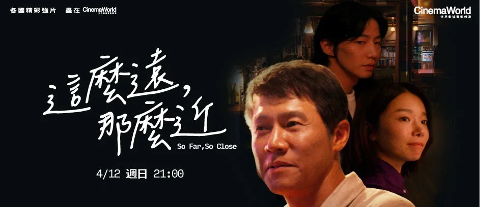 《這麼遠,那麼近》(So Far, So Close)以音樂為核心,在奇幻與浪漫的氛圍中訴說一段動人故事。音樂不僅是全片的靈魂,更是角色間情感聯繫的重要線索。作為宋再臨的銀幕遺作之一,無疑是他留給世人的一份珍貴禮物。4月12日(週日)晚間9點,敬請鎖定CinemaWorld世界影城電影頻道全台獨家首播,觀眾可透過中華電信MOD 627台、凱擘及台灣大寬頻606台、Home+中嘉215台、TBC台灣寬頻205台、四季線上154台、DCTV全國數位223台、大台中數位500台及花東地區有線電視602台收看;同時 OTT 平台遠傳friDay影音 也於4月同步獨家上線。讓我們一起在螢光幕前,再次見證並深深緬懷這位優秀演員的最後身影。
